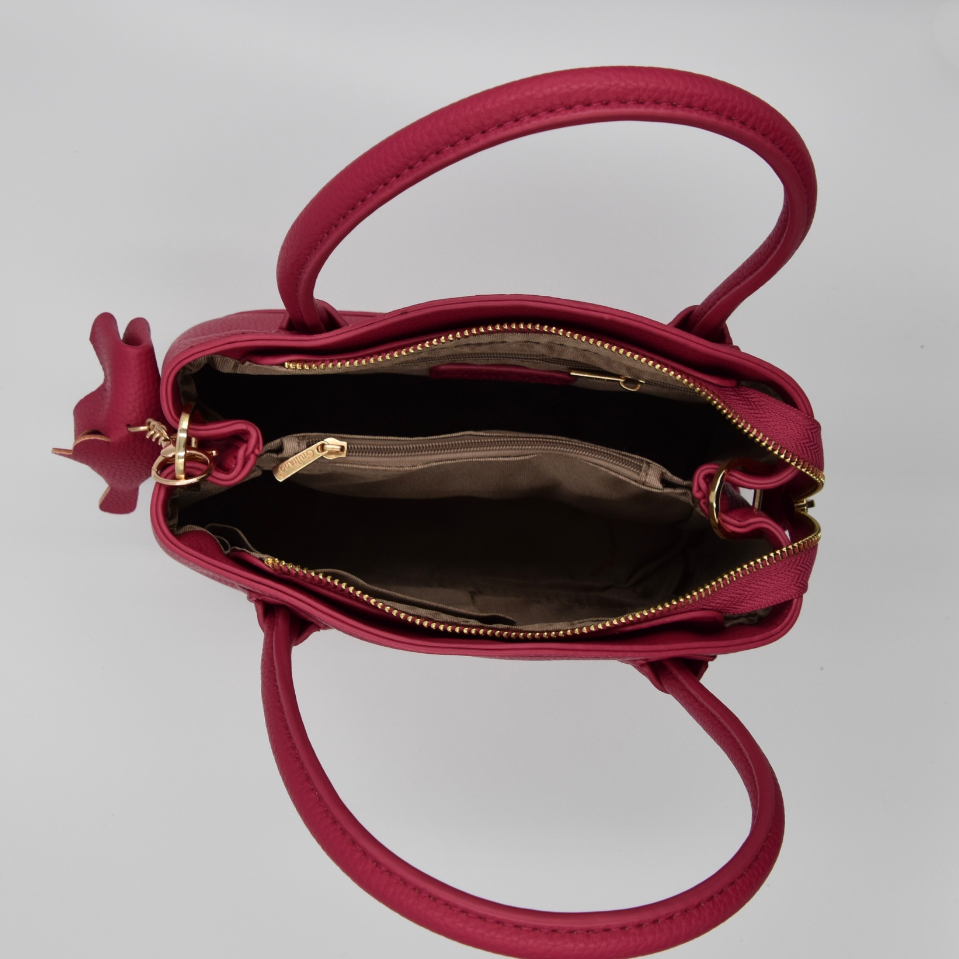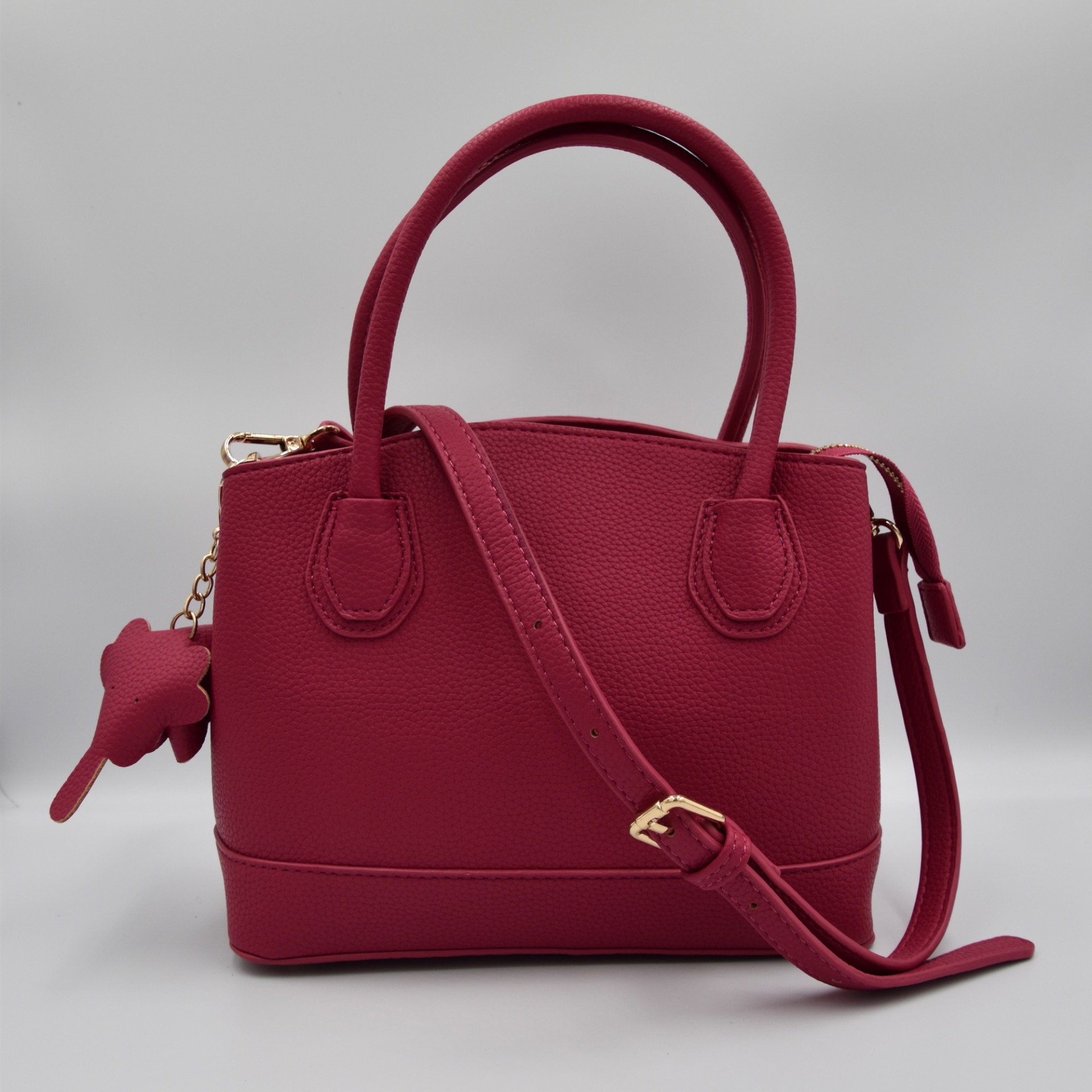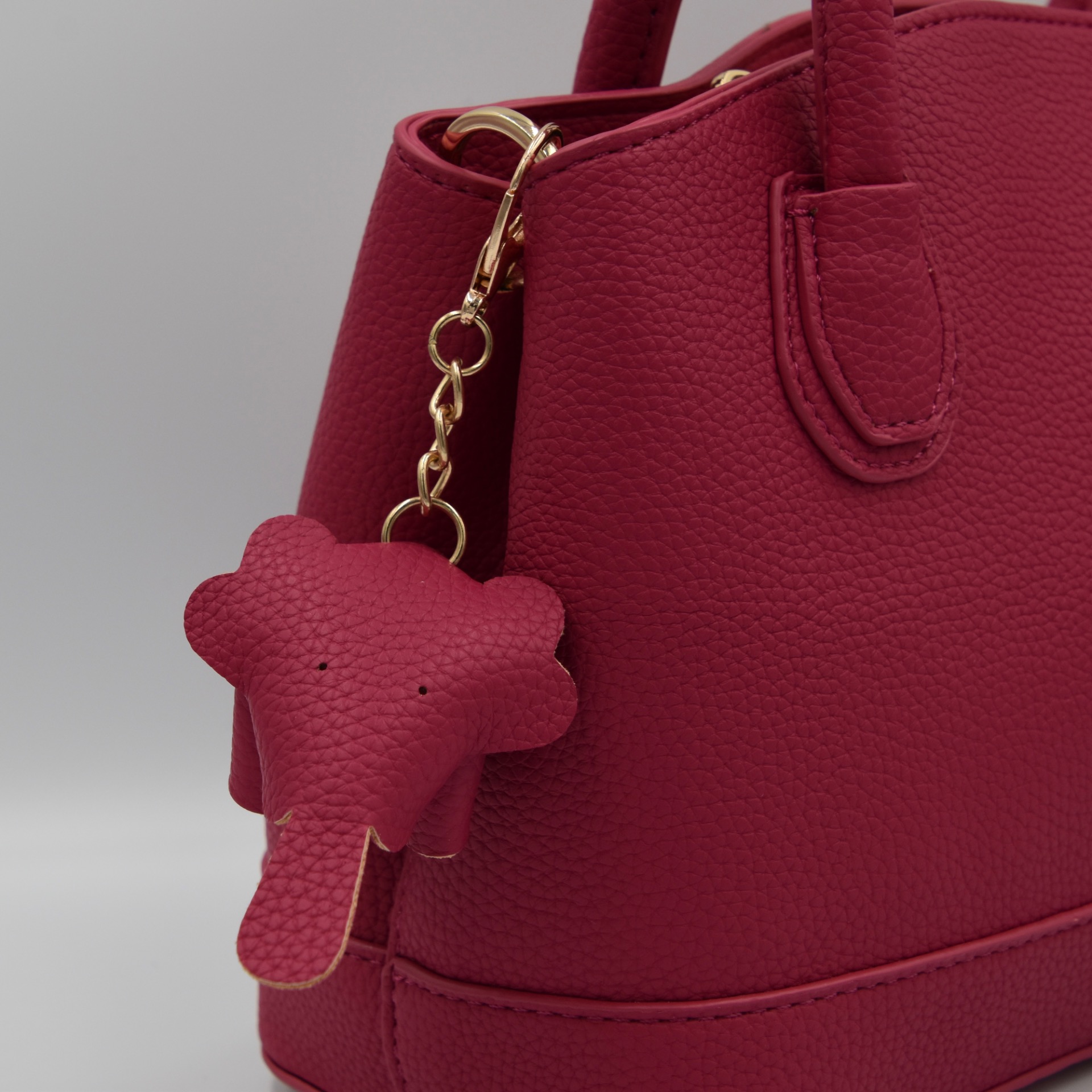 Trendy handbag in faux leather, perfect for any occasion. The removable elephant charm adds a playful touch, while the detachable strap lets you wear it crossbody as well.